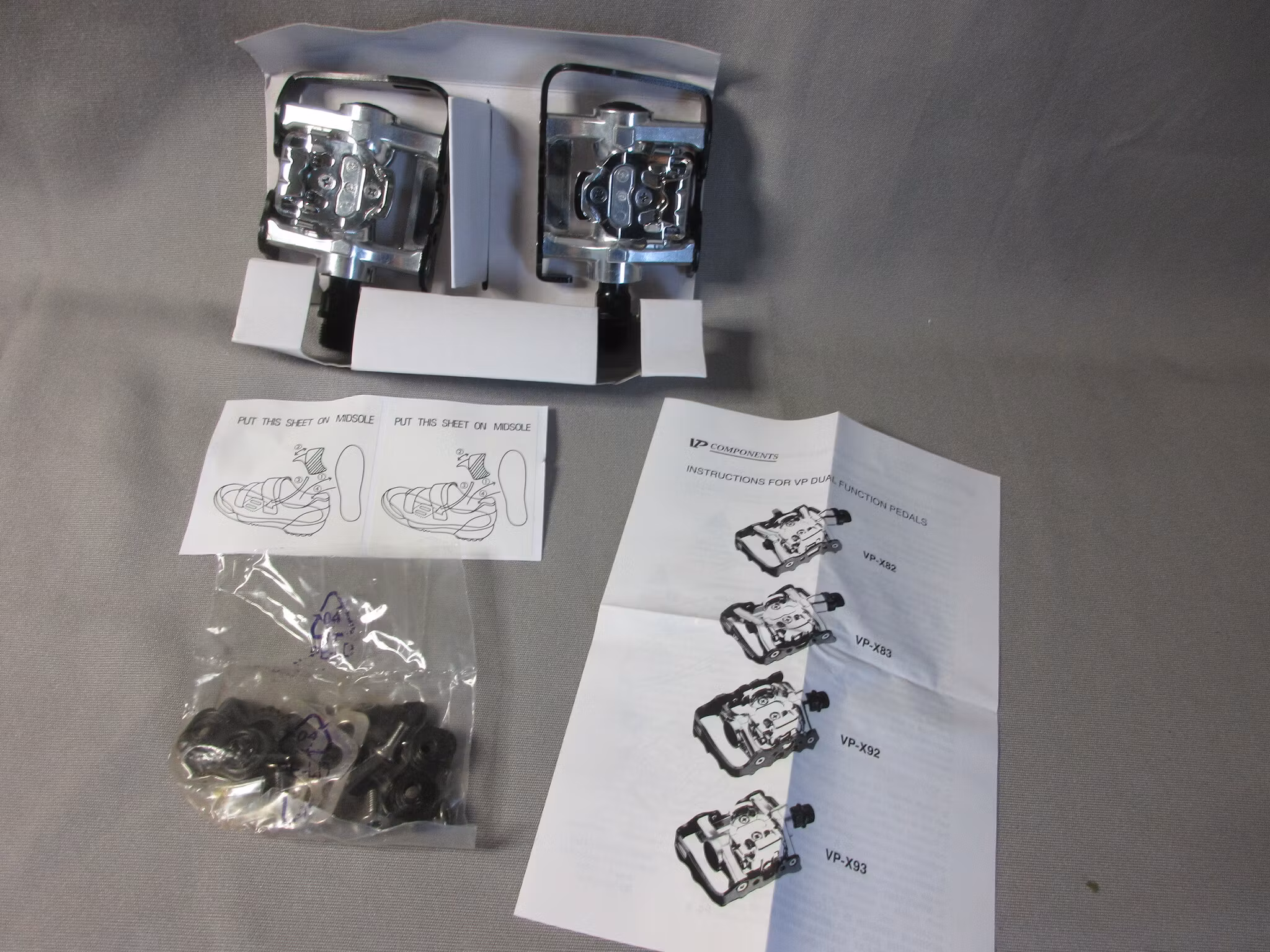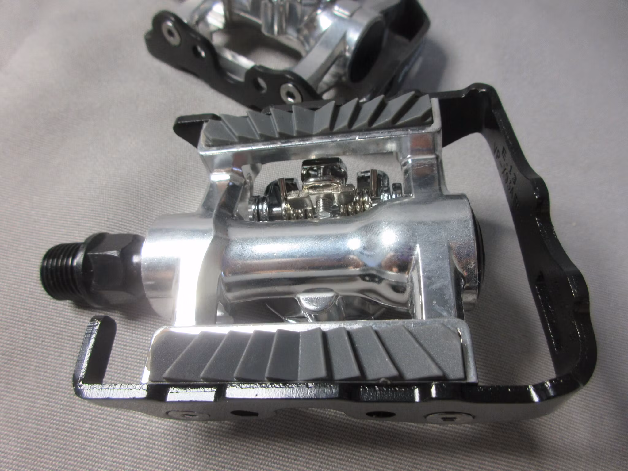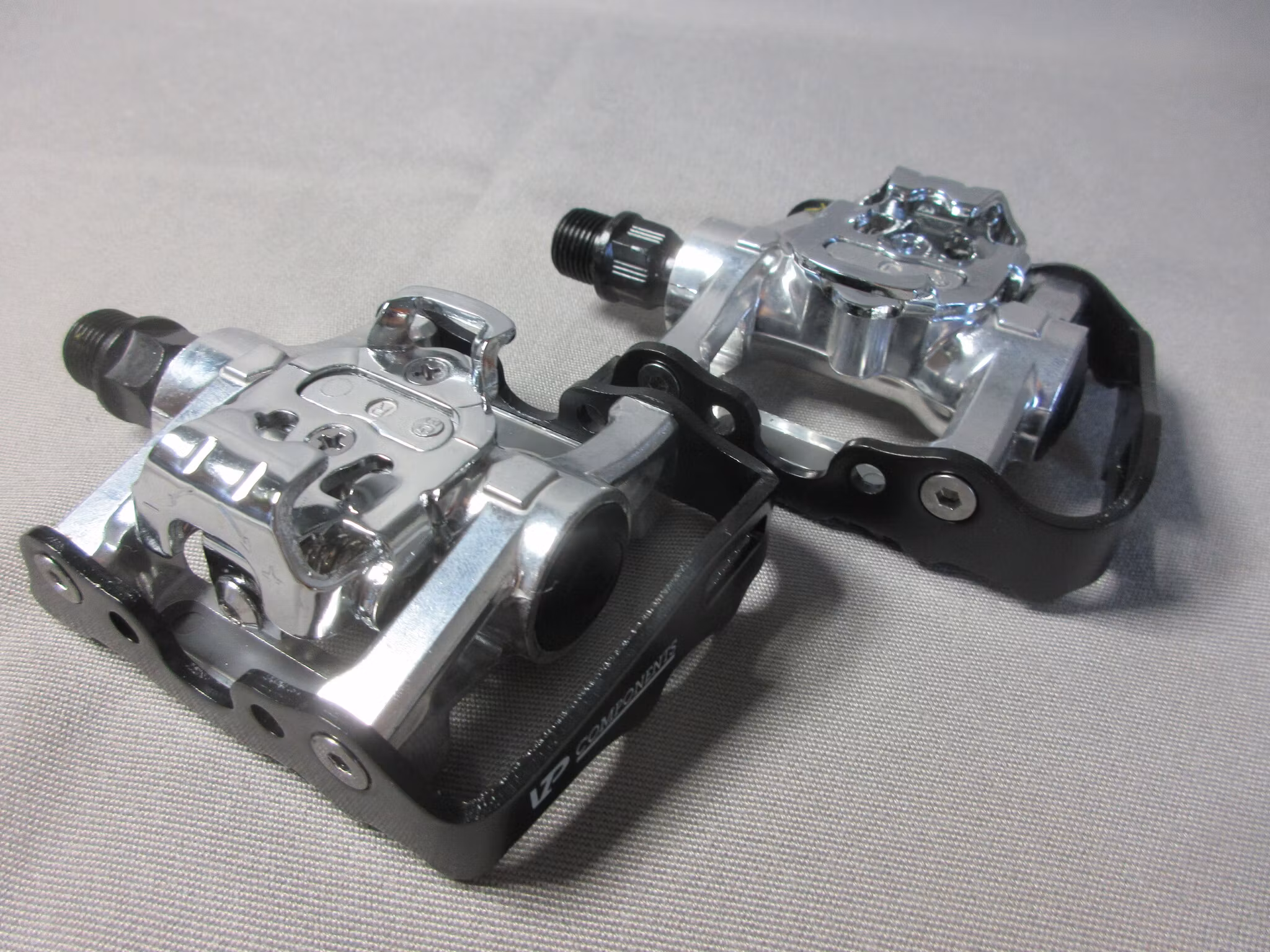 VP's VP-X93s are two pedals in one and perfect for all types of riding, and both road and mountain biking, too. On one side there are standard platforms for riding with regular shoes and on the other side the pedals are clipless for using cycling shoes with recessed SPD-style cleats (cleats are included with the pedals). These are great pedals for anyone learning to use clipless pedals and for anyone who likes to (or needs to) switch between riding in regular and cleated shoes. These fine pedals have tough CNC-machined chromoly axles, aluminum bodies and quality bearings. Plus, the clipless jaws have adjustable tension, too.