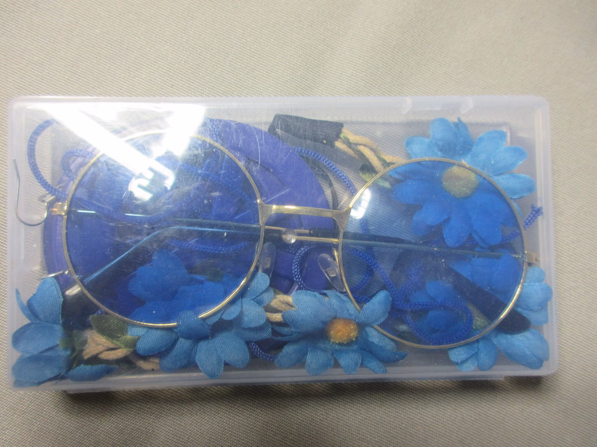 Fredsskylthalsband och örhängen, 1 hippiecirkelglas och 1 st pannband.