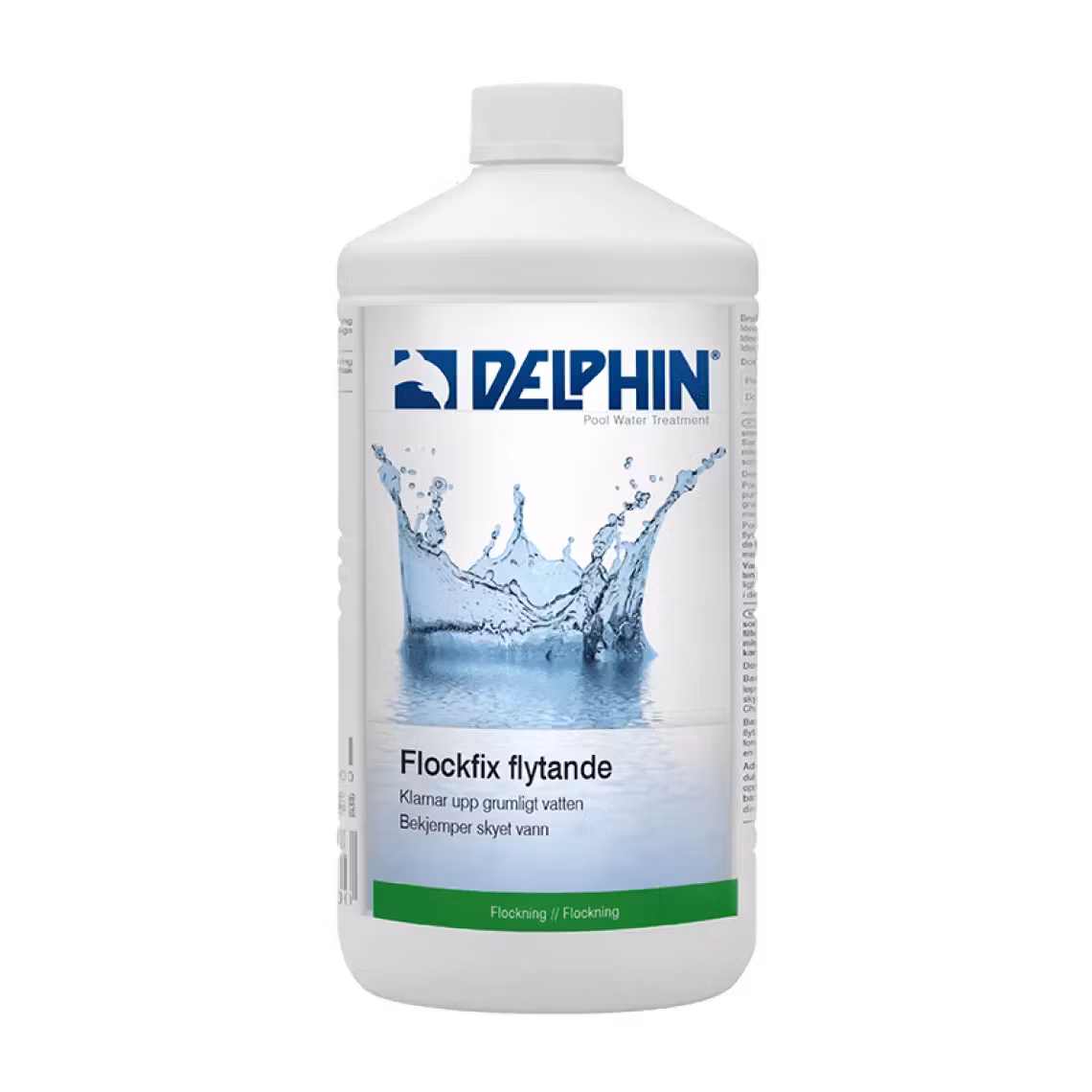 Delphin Pool Flockfix Flytande, 1lFlytande specialprodukt för bekämpning av grumligt vatten. Förbättrar filtrets kapacitet.
